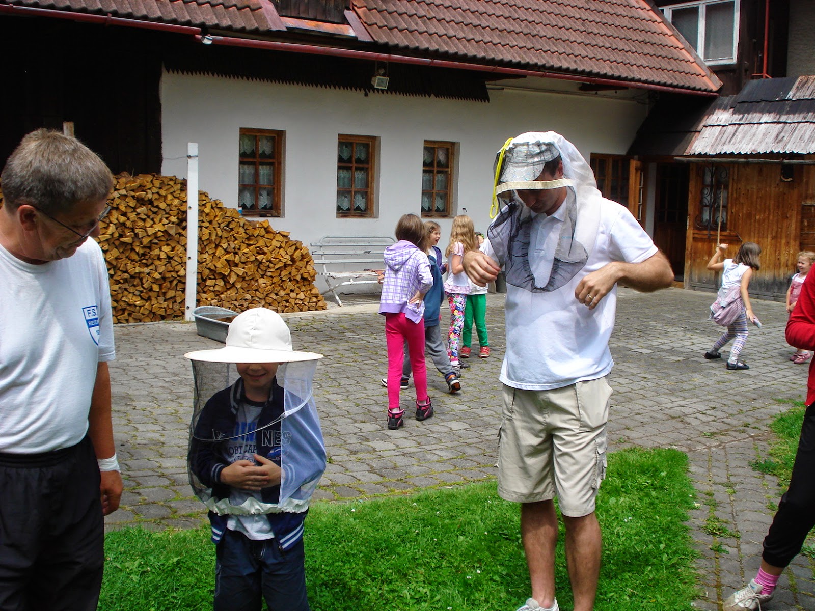 Na celý týždeň mali pripravený zaujímavý program. Počula som ich jeden deň hrať loptové hry v obecnom športovo-relaxačnom centre, videla som ich hrať sa v Parku Martina Kukučína, včera boli na výlete na Oravskej priehrade. Previezli sa loďou na Ostrov umenia. Dnes mali dohodnutú návštevu našich včielok. Manžel im porozprával o dôležitosti včielok pre prírodu a človeka. Zdôraznil im, že včielok sa nemusia báť. Útočiť začnú iba vtedy, ak ich vyrušia pri práci. Vysvetlil im, ako majú chodiť v ich blízkosti. Potom im včielky ukázal cez sklenený diel v zadnej časti úľa.