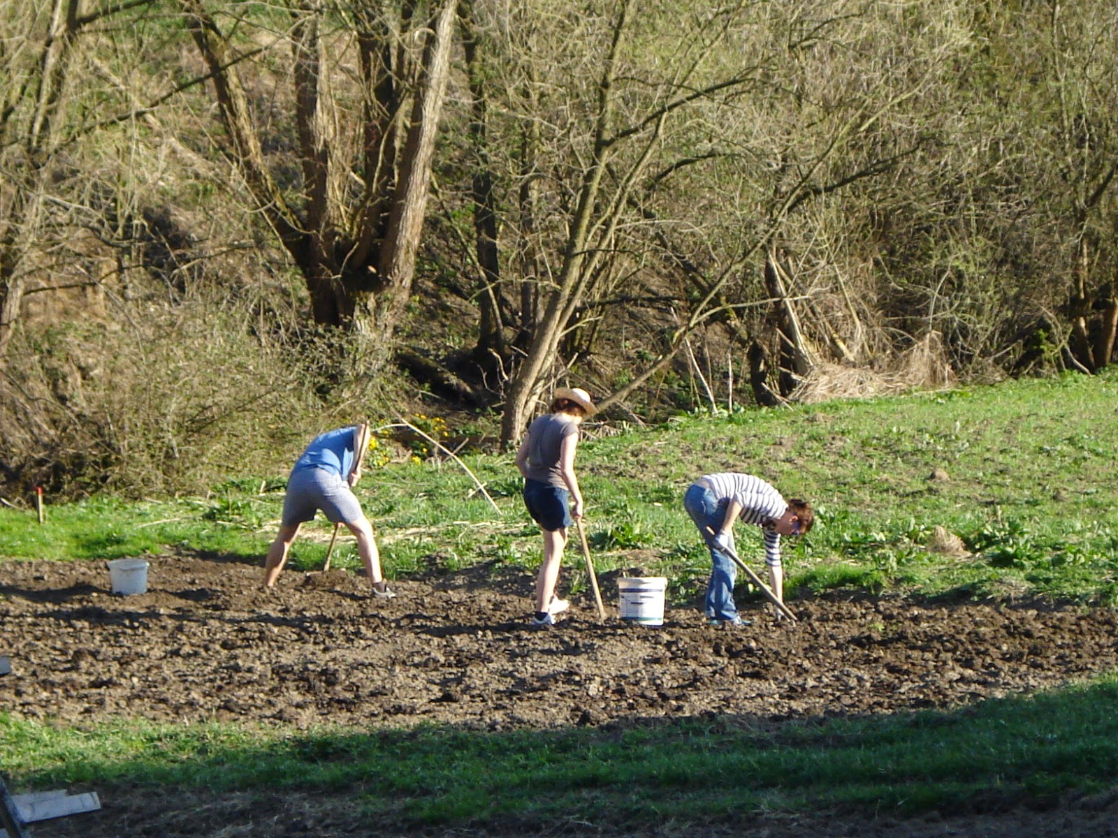 Ahhh hard work planting fields by hand! The people are strong. Here, they use giant tractors (combines) for everything -- plow, fertilize, seed, harvest! I bet your crops taste better. :)