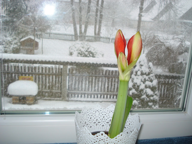 Ku kvietku amarylis ma viažu nádherné spomienky na moju sestru Amálku. Pestovala ich dlhé roky v rôznych farebných odtieňoch a po odkvitnutí ich mávala do jesene von. Keď som pred vyše týždňom uvidela cibuľu amarylisu v obchode, neodolala som :-)